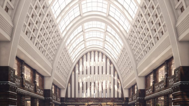 “It’s clad in brick and sets up a divide between the public and common realms and provides access up and down,” he says. “And the stairs – by consolidating most of the auxiliary spaces along two different axes – opens up to the outside.”