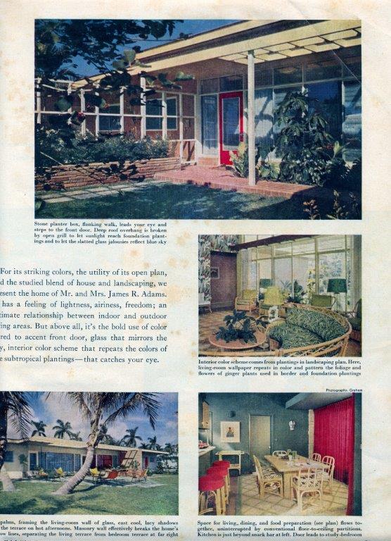 1950 - The James R. Adams House, 400 San Marco Drive, Ft. Lauderdale FL. Featured in Better Homes and Gardens, February 1952. Sold in 1997 to Scc Contracting Inc. Front facade changed in the late 1990s, bottom photo.