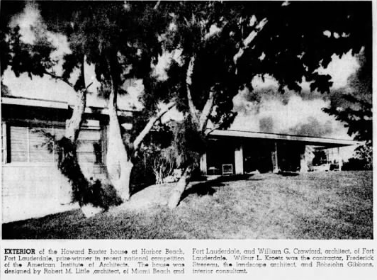 1949 - The Howard Baxter House, 1400 South Ocean Drive, Ft. Lauderdale FL. Designed while working with Robert M. Little. Won a 1949 AIA Merit Award. Either destroyed or completely remodeled and expanded in 1996, bottom photo.