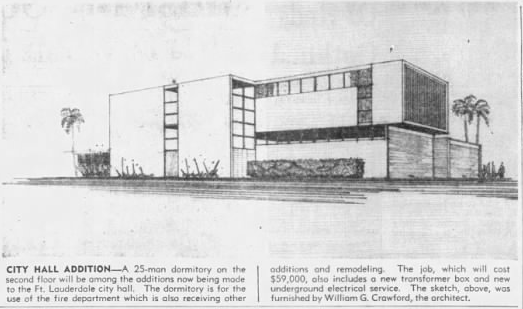 1954 - The Ft. Lauderdale City Hall Dormitory Addition, Ft. Lauderdale FL. A 25 man dormitory for Ft. Lauderdale firemen. Status unknown.