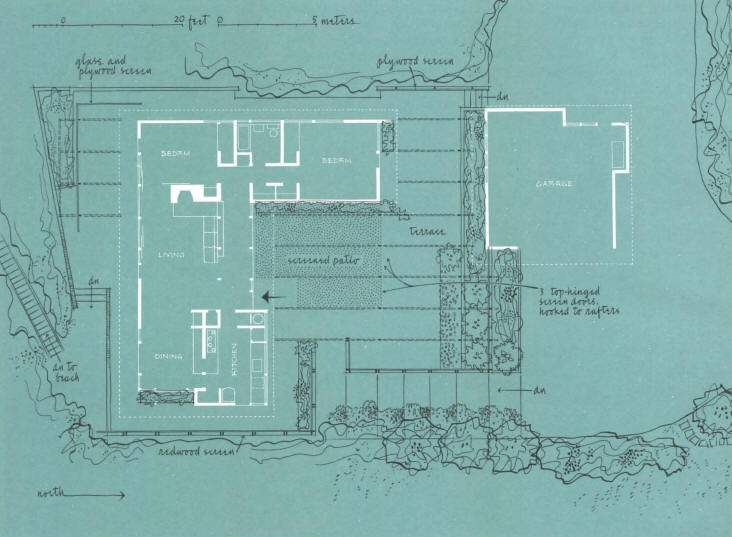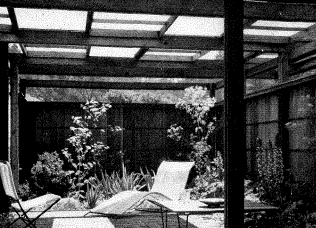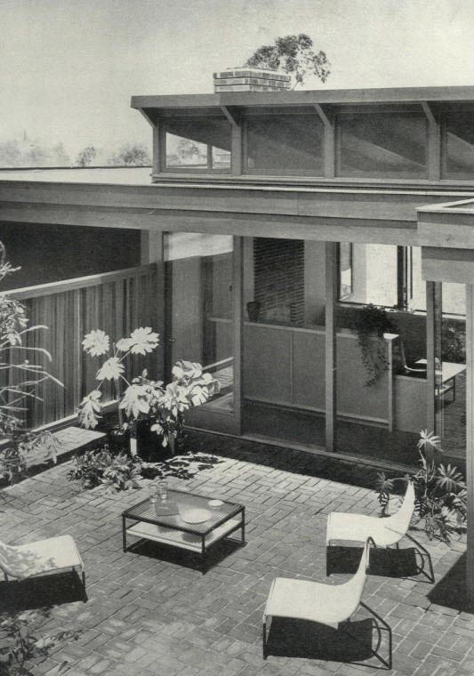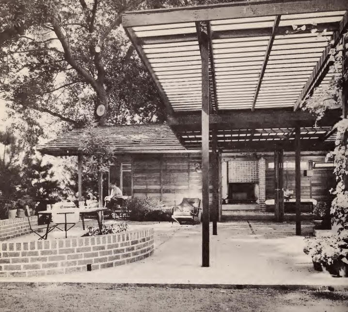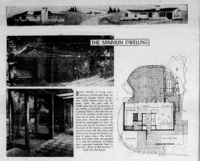 1946 - The Gordon and Janie Drake House, aka Basic House, 10433 Oletha Lane, Los Angeles CA. Photos by Julius Shulman. Complete with lily pool, terrace, and pool. Featured in Interiors, September 1947; in Progressive Architecture January 1950. House was designed with affordability for veterans as a prototype for future houses.