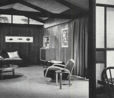 1950 - Sunset Magazine featured a demonstration cabin of Drake's in the July issue. Unbuilt.