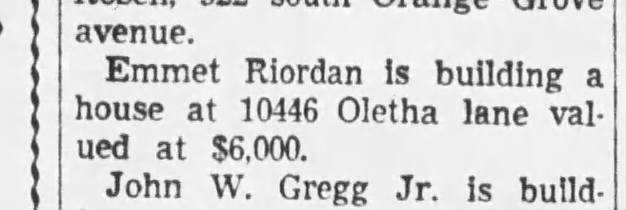 1946 - The Emmet Riordan House, Los Angeles CA. Newspaper dated May 24, 1946 shows Mr. Riordan building but no name of architect. Status unknown.