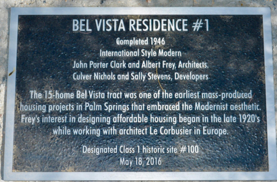 Designed with John Porter Clark, the Bel Vista Tract as one of the earliest mass-produced housing projects in Palm Springs. Developed by Culver and Sally Stevens Nichols.