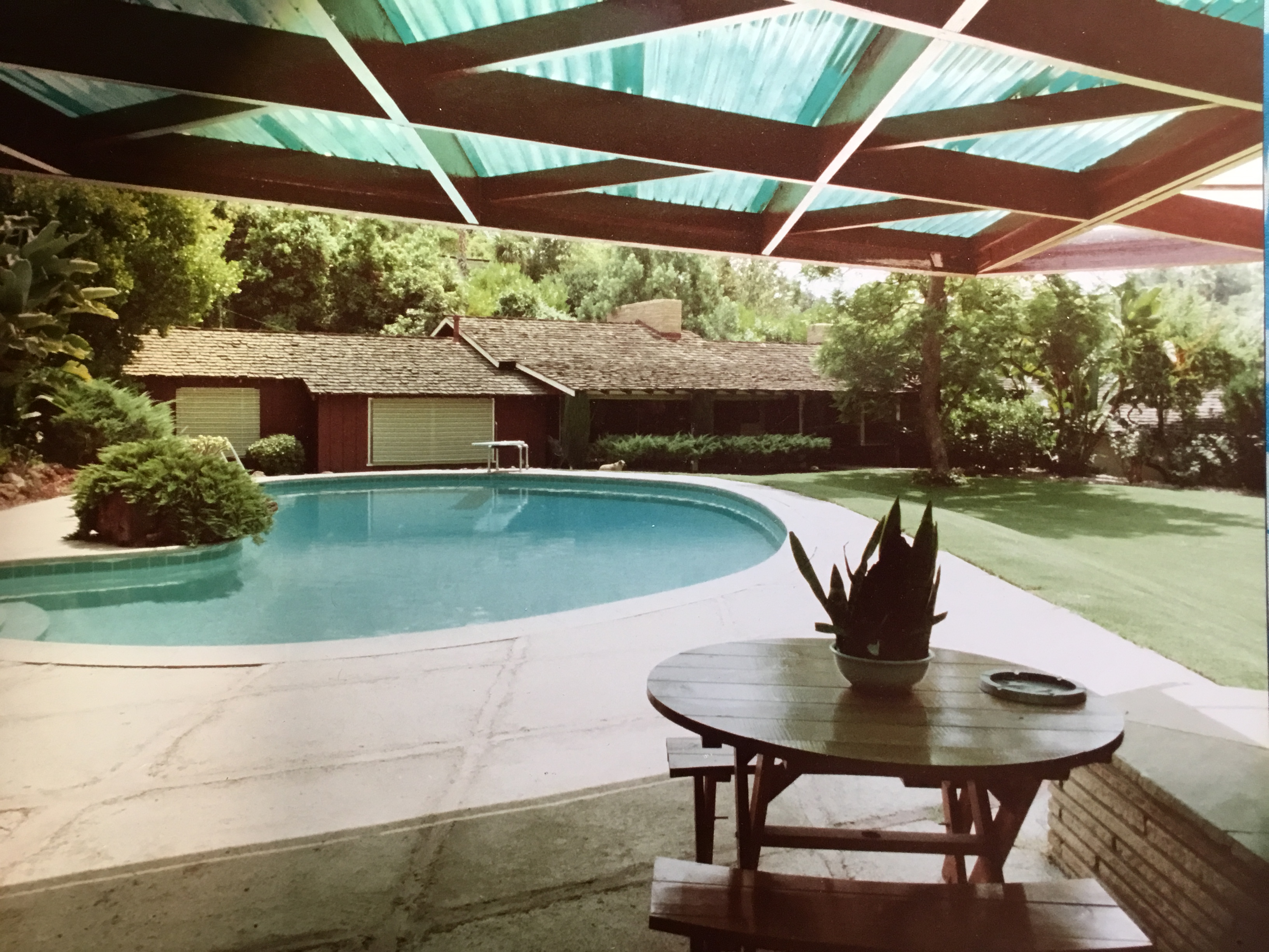 1952 - The Charles Laughton Pool and Dressing Rooms Remodel, 1825 North Curson Avenue, Los Angeles CA. Original house built in 1910. Sold to the Anthony Bonsignore Trust. Photo by Michael Locke.