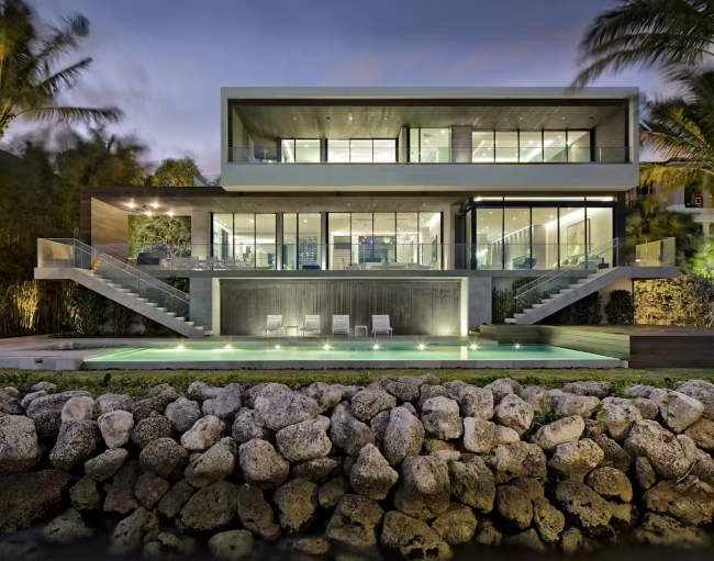 2018 - The Brad and Shona Tuckman House, aka River’s Reach, 516 Mola Avenue, Fort Lauderdale FL. 10,000 sf. Built by Bomar Builders. For sale in 2025.