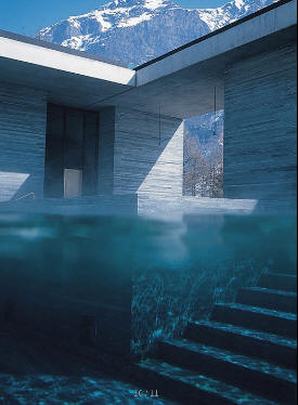 it's up by coach to the tiny town of Vals in the Swiss Alps to one of the world's most incredible spas, the 7132 Thermal
