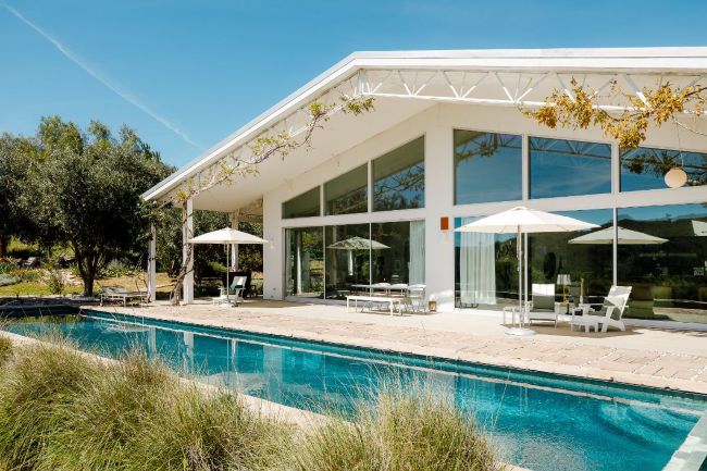 2015 - The Dmitri Siegel and Woodwyn Koons Renovation, 712 Cuyama Road, Ojai CA. Renovation of a 1962 Ranch located in the Arbolada neighborhood. Bestor moved the kitchen to the center of the house while using glass walls and mirrors to bring the outdooors in. Last photo is pre-renovation.