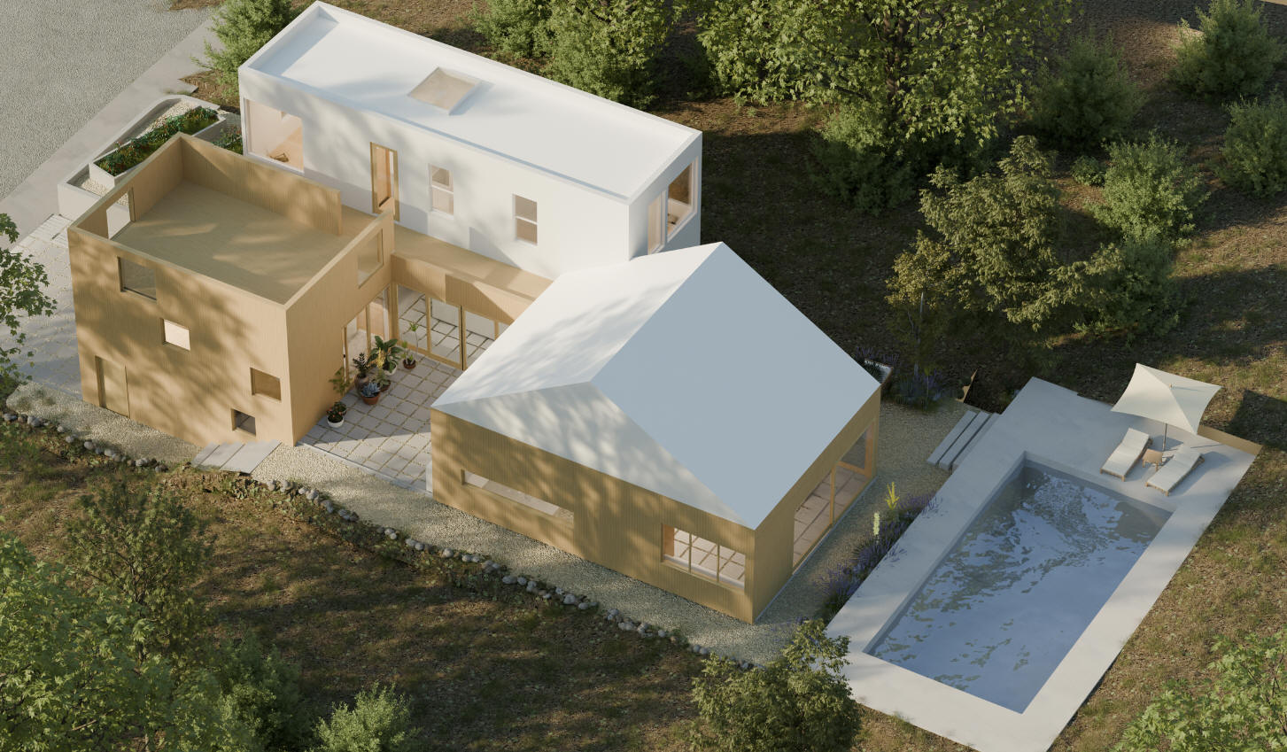 2026 - The Dana and John Childers House, 1166 Fiske Street, Pacific Palisades CA. Part of the Case Study Adapt series. Replaces a house lost in the 2025 Palisades Fire.