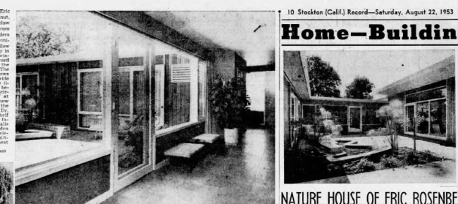 1953 - The Dr. Eric and Mrs. Thelma Rosenberg House, 1129 West Walnut Drive, Stockton CA. Not sure why its listed in the archive as 1955 it was completed in 1953. Sold in 1994 to William III and Wendi Maxwell. First three photos from the Stockton Record, August 22, 1953.