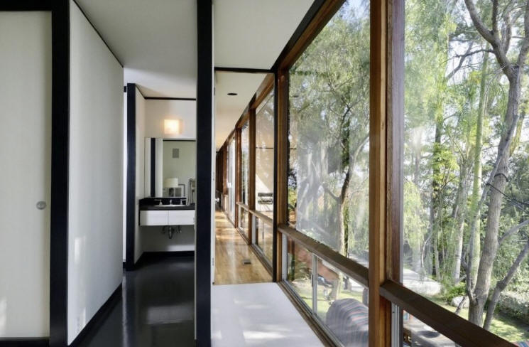 1950 - The Martin R. and Eva Zimmerman House, 400 North Carmelina Avenue, Los Angeles CA. Commissioned in 1949. 2770 sf. Designed with Emiel Becsky, whose name is on the building permit. Landscape design by Garrett Eckbo; engineering by Mackintosh and Mackintosh; built by Leon Cherwin; B/W photos by Julius Shulman. Sold in the 1960s to Richard Kelton, who enlarged the kitchen, built by Jack Strauss. Sold in 2004 to Sam and Hilda Rolfe. Deeded to the Rolfe Family Trust. Other photos by Michael Locke, Adriene Biondo, Quinn Garvey. Video by Quinn Garvey. Sold off-market in 2023 to Chris Pratt and Katherine Schwarzenegger, who destroyed it.