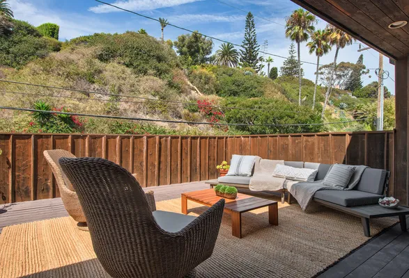 1960 - The Robert Bregman House, 1443 Devlin Drive, Los Angeles CA. Sold to actor Jack Haley Jr, who in the early 1960's enlarged two bedrooms, added a dressing room, the entry, and the bathroom. He added a walking deck in 1986. Haley also added an addition to the rear of the house and added a new deck in 1987. Haley lived here with his wife actress and singer Lixa Minelli during their brief marriage between 1974 and 1979. Sold in 2000 to Kelly Brandt. Sold in 2002 to Steven Hermann. Sold in 2003 to Keena One Trust. Sold in 2011 to Carsten Fischer. For sale in 2024. Photos by Michael Locke.