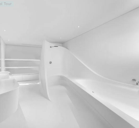 2011 - The Vladislav Doronin House, aka Capital Hill Residence, Rublyovka, in the Barvikha area of Moscow, Russia. Rublyovka is the Beverly Hills of Moscow. 28,500 sf. Commissioned in 2006. Model Naomi Campbell, who Doronin was dating from 2008-2013, participated in the design. Cost, approximately $140M. The swimming pool converts to a dance floor. Designed with Patrik Schumacher plus local architect Mar Mimarlik Ltd. This was Hadid's first completed house, habitable in 2011 but not completely finished until 2018.