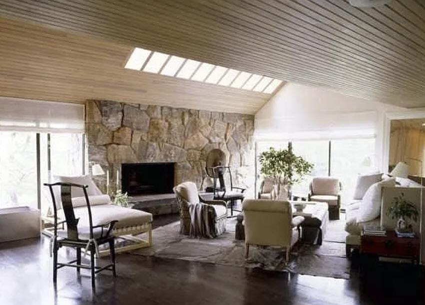 1976 - The W. A. Morton House, 43 Pointe Mecox Lane, Water Mill NY. One of three houses at Pointe Mecox. Sold in 2011 to the Gisela Hoveyda Trust. Most of the interior woods have been sheetrocked over, sadly. Available for rent.