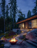 2003 - The Jeff and Amy Larson Cabin, aka Chicken Point Cabin, aka Think Tank, 12377 North Rosco Road, Hayden ID. Commissioned in 2000. Won the 2005 Residential Architect Grand Award; 2004 AIA National Honor Award; 2004 American Architecture Award; 2003 AIA Northwest and Pacific Region AIA Award; 2002 AIA Seattle Honor Award. Engineering by Monte Clark Engineers. Built by M. C. Company. Steven Rainville, project architect; Debbie Kennedy, interior designer.