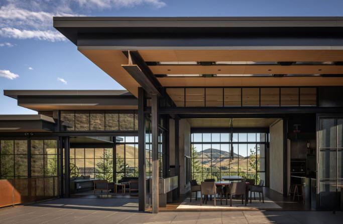 2007 - The Jan Cox House, aka Outpost, 409 West Glendale Road, Bellevue ID. Project architect, Kirsten Murray. Photos by Tim Bies. Engineering by Monte Clark, MCE Structural Engineering. Built by Upham Construction. Won a 2011 AIA National Honor Award; 2009 American Architecture Award; 2009 AIA National Housing Committee Award; 2009 Residential Architect Grand Award; 2007 AIA Seattle Merit Award.