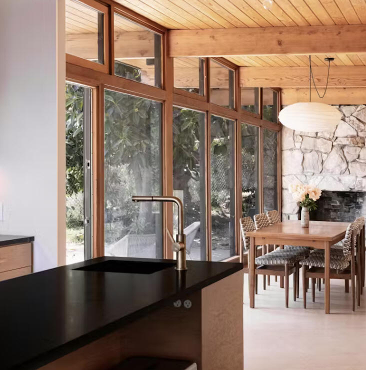 1947 - The Kemper Nomland Jr. House, aka Case Study House #10, 711 South San Rafael Avenue, Pasadena CA. Designed with his father, Kemper Nomland Sr. Nomland Jr. sold the house in 1965. Sold to the Marples Family Trust. Altered at some point. Sold in 2012 to Timothy M. Morris and Diane Kawashima. Sold in 2017 to actress Kristen Wiig. Sold in 2021 to actress Lily Collins and Charlie McDowell. The house was remodeled by architect Emily Farnham in a “Mid-Century California meets Scandinavia” style. A previous 600-sf addition created a fourth bedroom, and the original concrete floors were restored. Sold in 2025. Top five photos by Michael Locke, others by Dennis Hill.