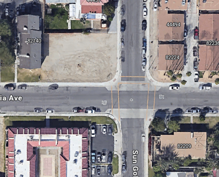 1952 - The Philip Johnson House, 81301 Avenue 52, La Quinta CA. The house appears to have been the only structure in the immediate area from 1959 through the 1990s (aerial above). It remained standing until sometime between 1997 and 2002, when it was destroyed. By approximately 2005, a larger housing development had been constructed, occupying the entire corner of the intersection.