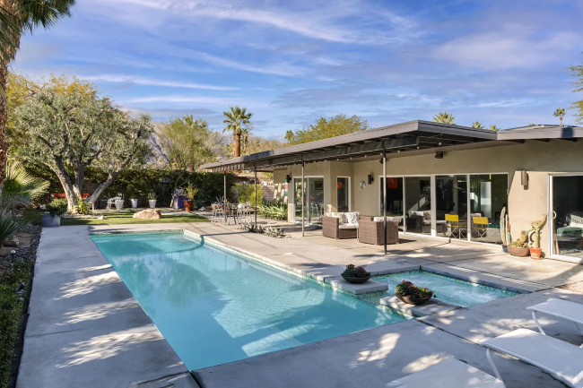 1950 - The W. C. Whitehead House, 77535 Calle Chihuahua, La Quinta CA. Remodeled and pool added in 1954. Rental in 2024.