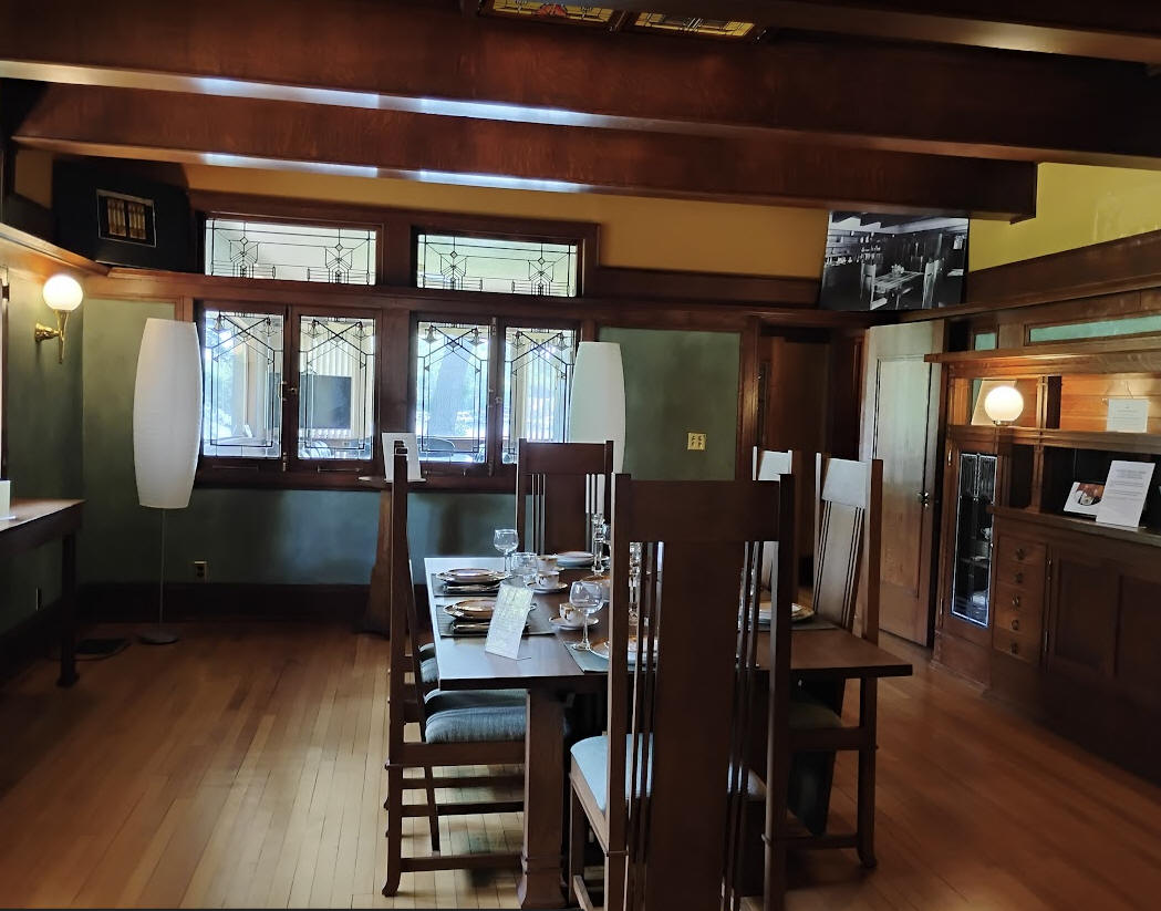 1889 - The Frank Lloyd Wright House and Studio, 951 Chicago Avenue, Oak Park IL. Playroom addition by Wright in 1894, commissioned in 1893. Studio added in 1898, commissioned in 1895. Converted into apartments by Wright in 1911. Converted back to the original Wright design by Clyde Nooker in 1956. Sold to the Frank Lloyd Wright Preservation Trust. Open for public tours.