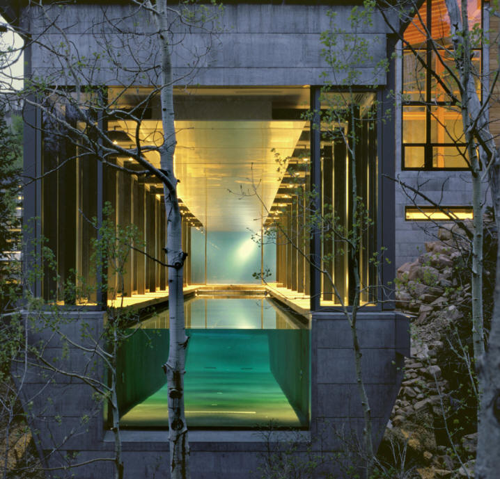 2004 - The Dennis and Vicki Farrar Residence, 25 White Pine Canyon Road, Park City UT. 12000sf. 12.8 acres. Commissioned in 2002. Project architect Gregory Mattola. Photos, Nic Lehoux. Has a cantilivered pool over a stream. Sold in 2010 to Robert and Deborah Schiller. There's a book on it.