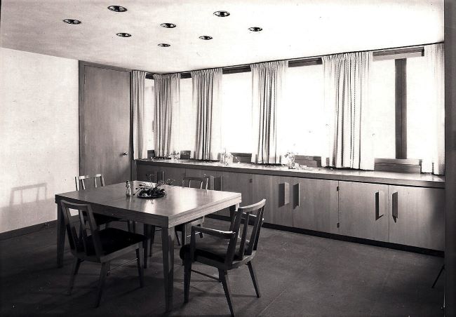 1941 - The Robert C. Reinke House, 33 Lexington Court, Midland MI. Originally a 2 bedroom, 1 bath home with an open living and dining room space. In 1947, Dow designed an addition which included a garage, a new master bedroom suite and a porch. Sold in 1968 to architect Jack Feagley and his wife, Doris. Jack Feagley, who worked with Dow 1962-1981, bumped out the dining room wall, reoriented the kitchen, and turned the porch into a family room. Deeded to the Doris J. Feagley Trust. Listed on the National Register of Historic Places in 2004.