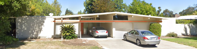 Saratoga, CA: 1964-65 - 35 Homes, 4-5 bedroom, Architect Claude Oakland. Atrium and gallery models. Neighborhood does include a few non-Eichlers. Columbine Court, Shubert Drive (between Columbine Ct and DeHavilland Drive), and DeHavilland Drive between Shubert and Anza. Many homes have pools; one has an interior pool.