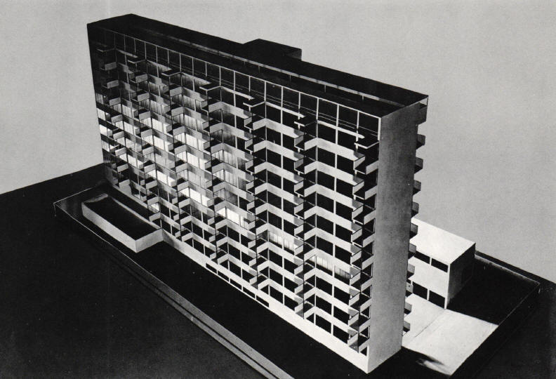 1956 - The Interbau Apartment Block, Berlin, Germany. Designed with Norman Fletcher, Morse Payne, Wils Ebert. Client was the City of Berlin. 64 units in a nine-story building. Status unknown.