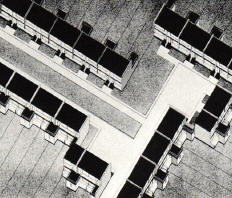 1923 - Model for Standardized Houses, Weimar, Germany. The Bauhaus Architectural Department took on low-cost housing. None were built.