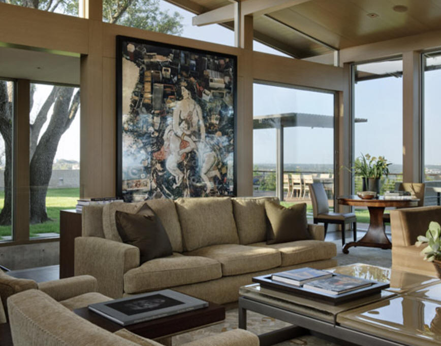 2001 - The Mickey and Jeanne Klein House, aka Lake Austin House, 1408 Rockcliff Road, Austin TX. 6000sf. Won the 2008 TSA Award, 2005 AIA Housing Award, 2004 Residential Architect Award, 2002 AIA San Antonio Award. Photos, Patrick Wong. Project architect, Bill Aylor; built by Lance Thompson; interior design, Denison & Denison Interiors.