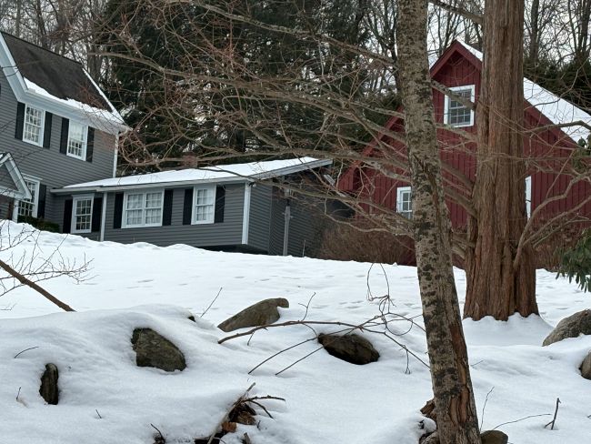 1935 - The Markel House, 36 Fox Run Road, Redding CT. it was modified by two different owners. An owner in the 1970s–1980s modernized the house and added the additions. The current owners later modified the house to give it a more colonial appearance. This work involved constructing a new exterior shell around the original structure, while many original interior features remain intact. The curved patio and railing, visible in the historic photograph remain. Information courtesy of the current owner of the house and Janet Ivaldi, Head of Adult Services and Circulation at Mark Twain Library in Redding, CT.
