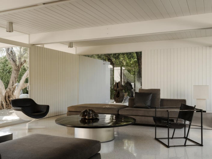1960 - 71049 Early Times Road, Rancho Mirage CA. Part of Thunderbird North, ten homes on Country Club Drive, Morningsprings Road, Morningside Drive, and Early Times Road designed in 1957 around a communal swimming pool designed by Wexler and William Cody. Sold to Lawrence B. Chrysler. Altered, badly, in the 1990s. Sold in 2015. Restored and renovated by in 2018 Brad Dunning who provided the interior photos. For sale in 2023.